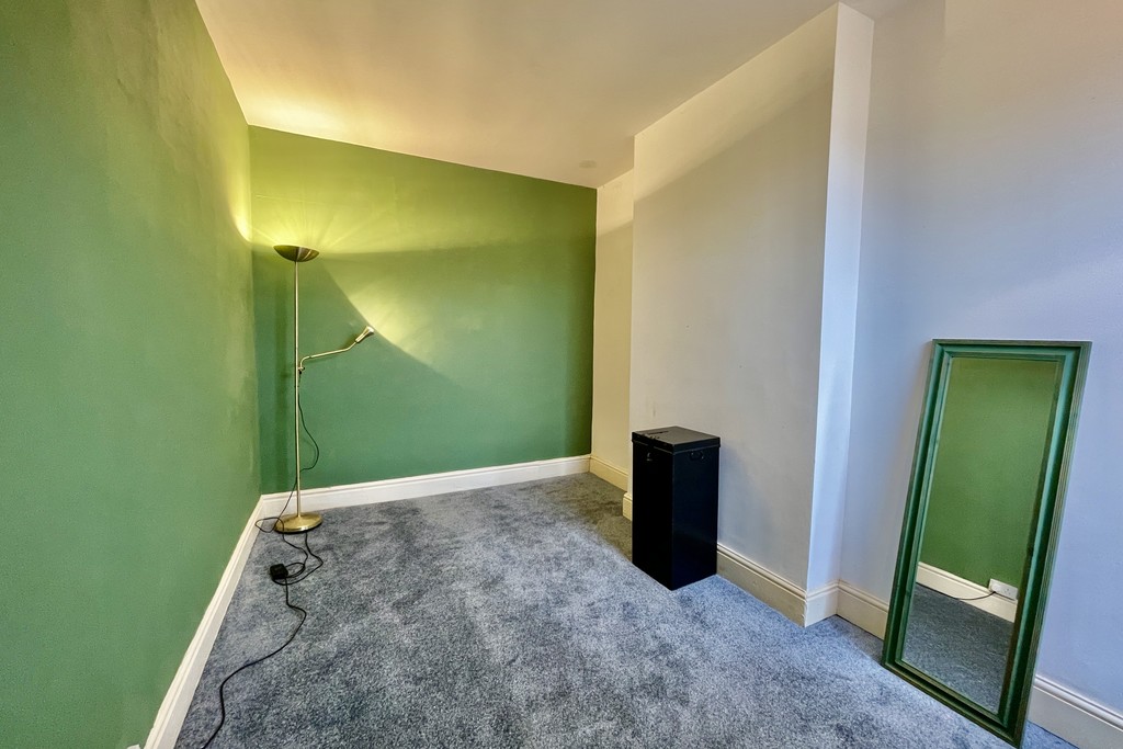 BEDROOM TWO Carpet, radiator, double glazed window to rear aspect, pendant ceiling light.
