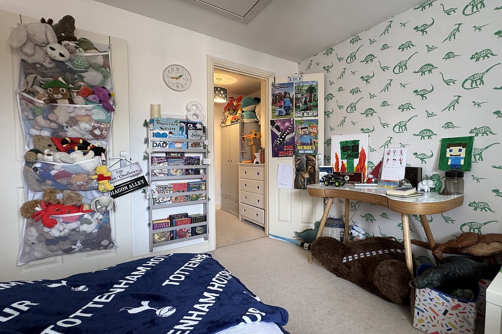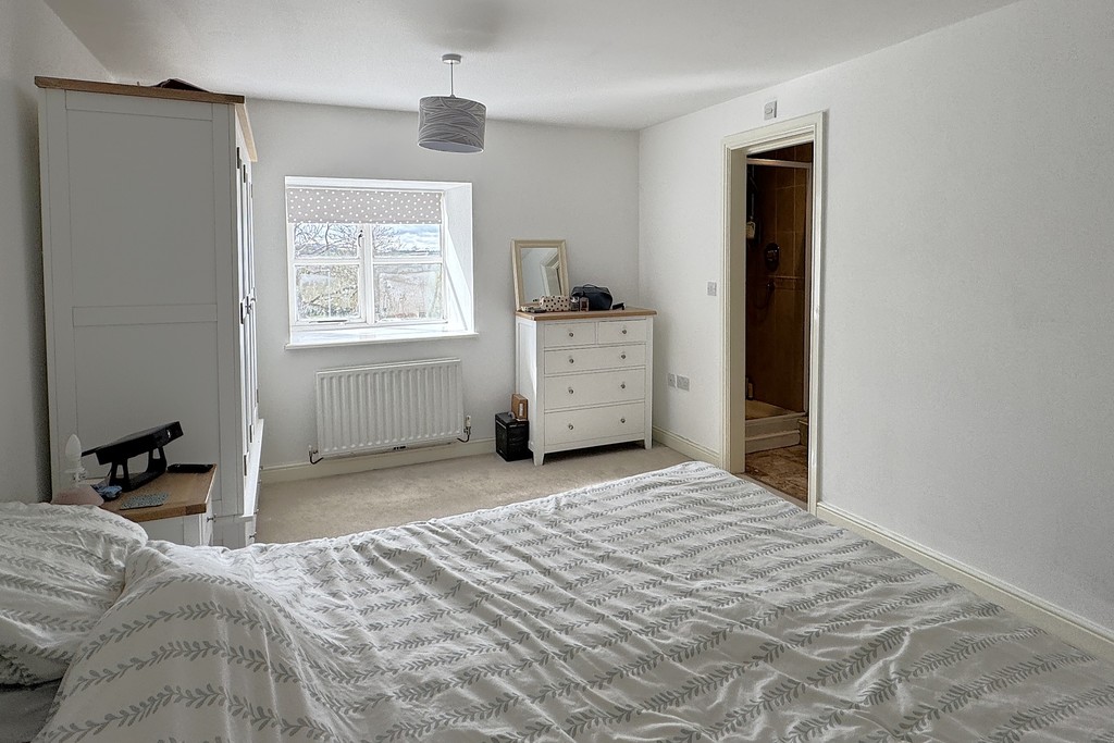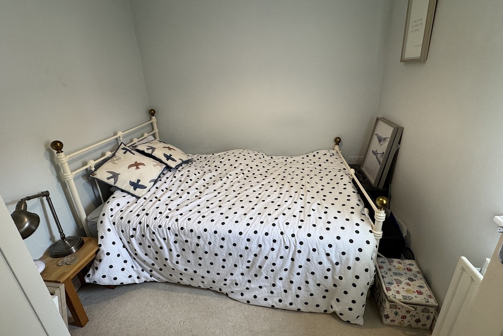 BEDROOM TWO 8' 8" x 11' 6" (2.66m x 3.53m) A comfortable double bedroom with a side‑facing window that brings in soft natural light, complemented by cosy carpet flooring. The room also benefits from a door leading through to a walk‑in wardrobe.