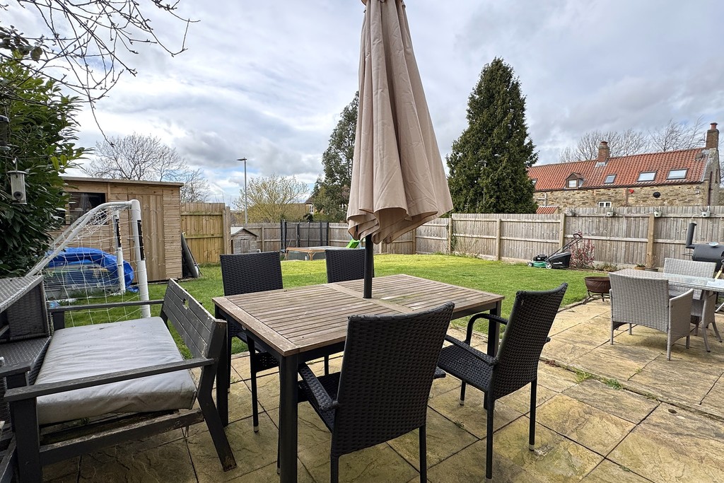 REAR GARDEN A wonderfully established west‑facing garden, perfect for enjoying long afternoons and golden evening sun. The space is thoughtfully laid out with two generous lawned areas surrounded by a variety of mature flowers, shrubs, hedging and trees, creating colour and interest throughout the seasons. A substantial wooden shed provides excellent storage or workshop potential. An extensive patio area offers plenty of room for outdoor dining and entertaining, enhanced by courtesy lighting, power points and an outside tap. Side gated access completes the space, which is mainly enclosed by panelled fencing for privacy.