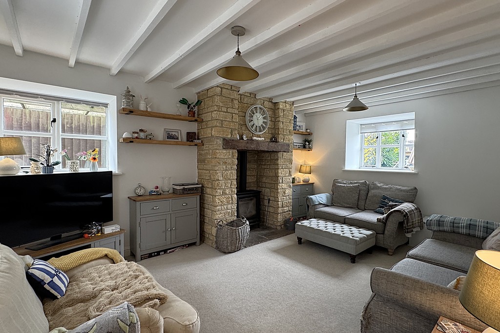 LOUNGE 14' 5" x 18' 10" (4.4m x 5.75m) A beautifully proportioned, dual‑aspect lounge designed for cosy evenings and relaxed family time. Natural light pours in from both sides of the room, highlighting the striking exposed stone chimney breast with its inset multi‑fuel log burner, a true focal point that brings warmth and charm throughout the seasons. Exposed ceiling beams add rustic character, while the soft carpet underfoot enhances the sense of comfort. A door leads through to the rear lobby.
