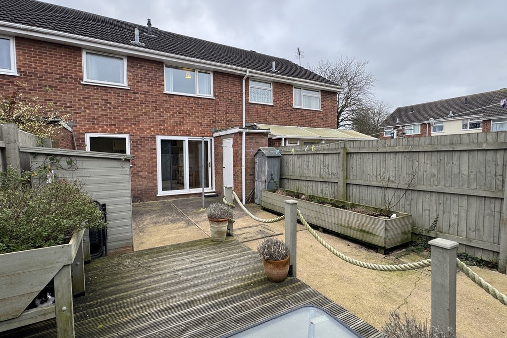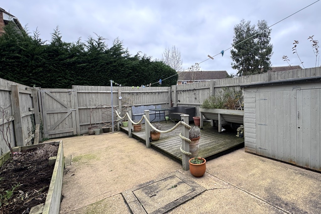 REAR GARDEN A good sized garden being hard landscaped for easy maintenance, a stylish decked seating area provides a great space to entertain. Wood panel fencing to the boundary with gated access to the rear for wheelie bins access, outside tap, storage shed and a further brick-built store.