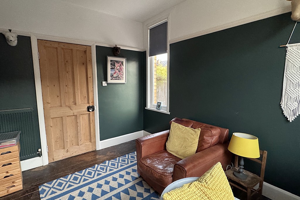 SITTING ROOM 12' 1" x 8' 8" (3.7m x 2.66m) Having dual aspect windows allowing plenty of natural light, radiator, original feature open fireplace, picture rails, fitted storage to the alcove and wood flooring.