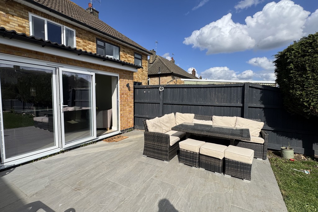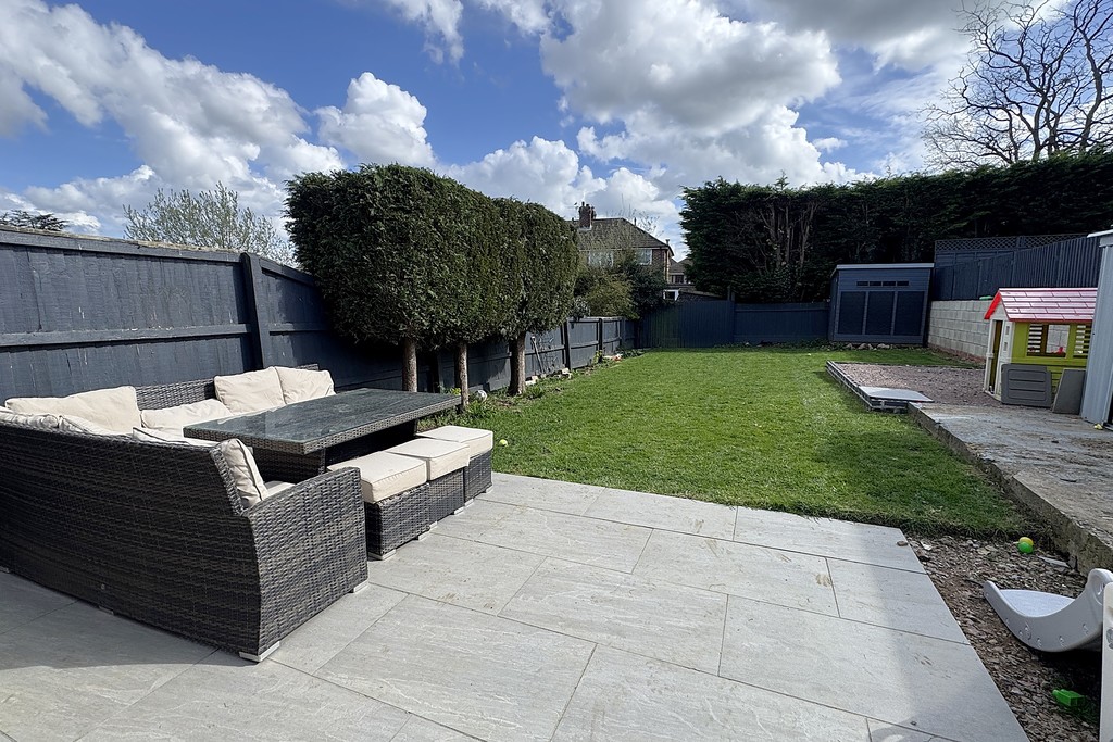 REAR GARDEN This good‑sized, south‑facing rear garden offers excellent privacy and features a newly laid paved patio directly adjoining the house, with additional hard standing to the side providing space for further seating. Mature shrub borders frame a central lawn that leads down to a garden shed. The boundaries are defined by brick walling to one side and wood‑panel fencing to the remaining two, creating a secure and attractive outdoor space..