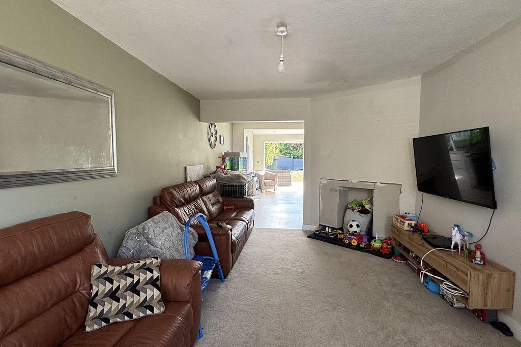 LOUNGE 16' 10" x 11' 2" (5.15m x 3.42m) A spacious reception room featuring a half‑bay double‑glazed window to the front, a focal‑point fireplace, radiator and soft carpet flooring, with an open aspect through to the kitchen diner.