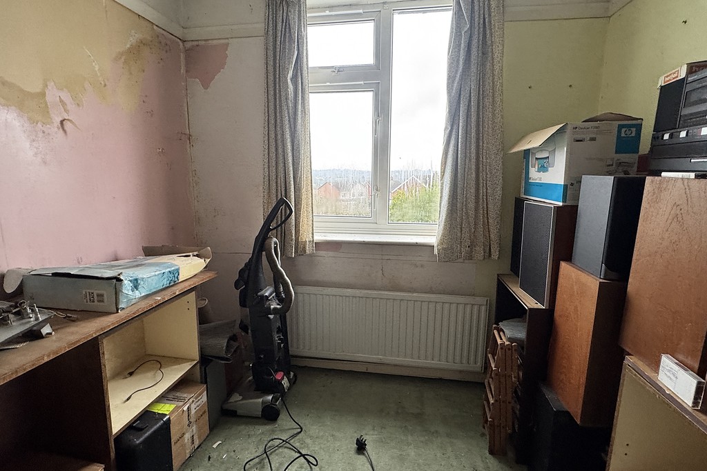 BEDROOM THREE 7' 4" x 8' 11" (2.26m x 2.73m) Having a rear facing window with elevated views of the town, radiator and carpet flooring.