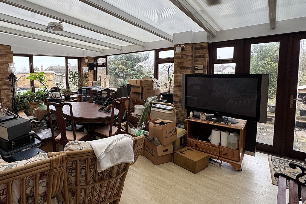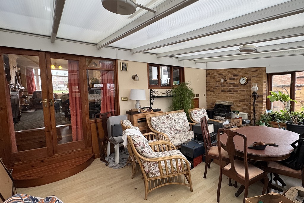 SUN ROOM 16' 0" x 19' 4" (4.89m x 5.9m) A great space for enjoying the garden having dual aspect windows and french doors opening onto the patio, two radiators, TV aerial point and laminate wood flooring.