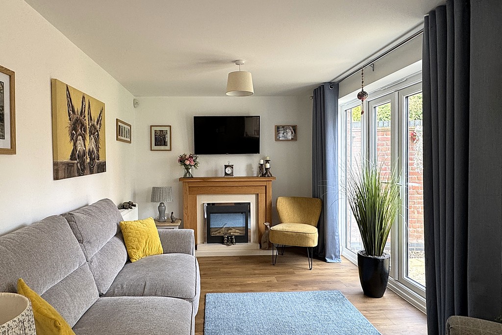 SITTING ROOM 17' 5" x 11' 5" (5.32m x 3.5m) A nicely proportioned reception room offering a comfortable and versatile space to relax or entertain. It features a double-glazed window to the front, French doors connecting to the entrance hall, a TV aerial point, two radiators for year-round comfort, and soft carpeted flooring underfoot