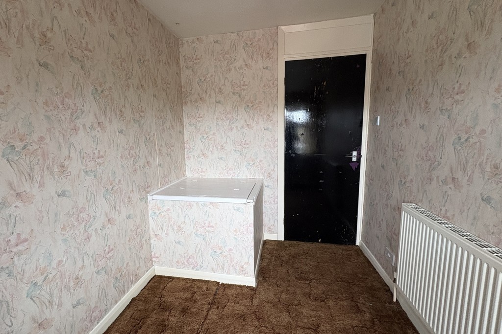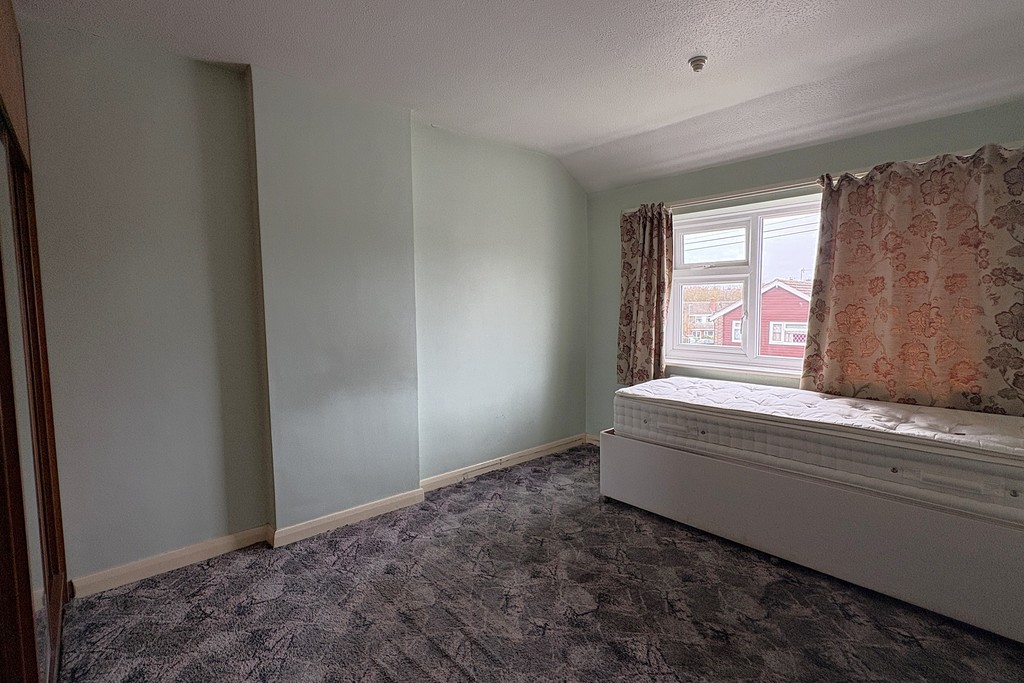 BEDROOM THREE 9' 6" x 5' 6" (2.91m x 1.68m) Having a front facing window, radiator, over stairs storage and carpet flooring.