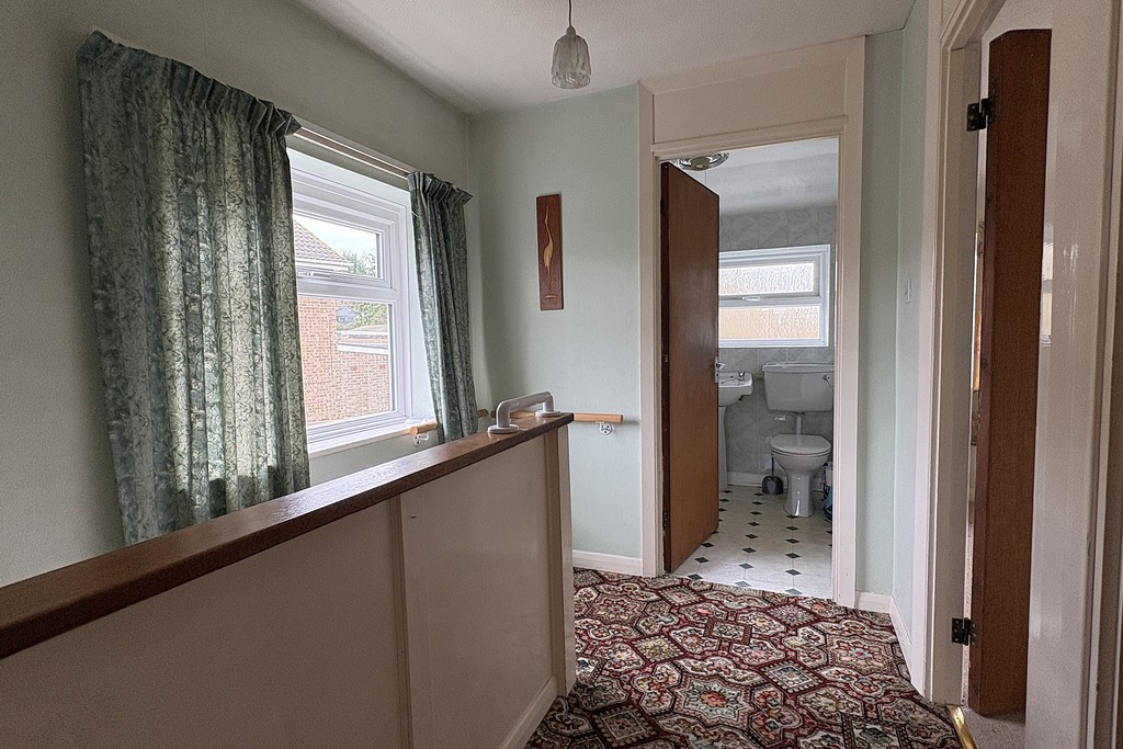 LANDING Having a window to the side, loft hatch, carpet flooring and doors off to;