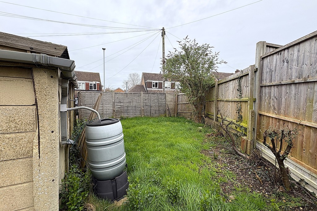 REAR GARDEN This south facing garden has a paved patio adjacent to the house continuing around to the side, steps up to a formal lawn with a mature tree, further lawn continues to the side.
