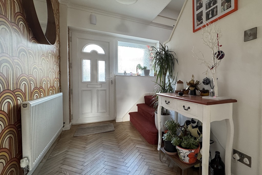 ENTRANCE HALL Glazed entrance porch with a door opening into the entrance hall with a window to the side allowing plenty of natural light to filter through. Stairs rising to the first floor, radiator, Parquet wood flooring and doors off to;