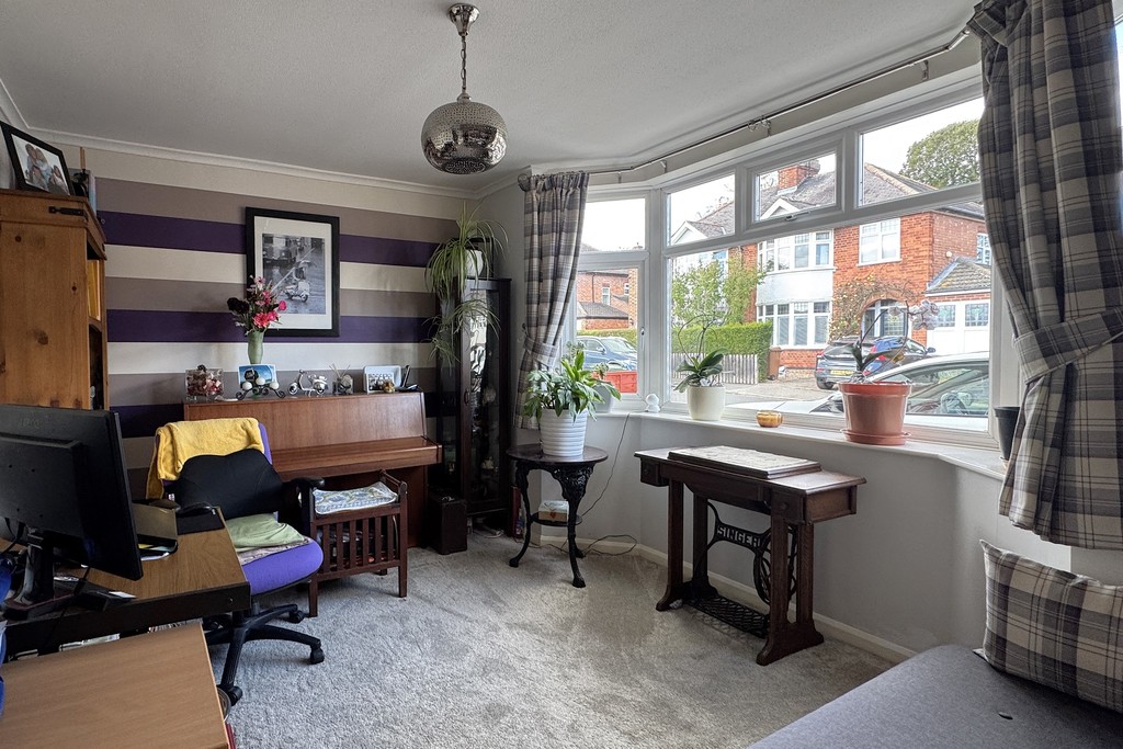 SITTING ROOM 12' 5" x 11' 5" (3.8m x 3.48m) Having a walk-in bay window to the front aspect, radiator, TV aerial point, French doors to the lounge area and carpet flooring.