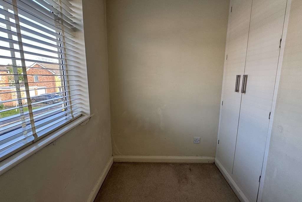 BEDROOM THREE 8' 2" x 7' 2" (2.51m x 2.19m) Having a front facing window with fitted blinds, radiator, built-in wardrobe, LED lighting and carpet flooring.