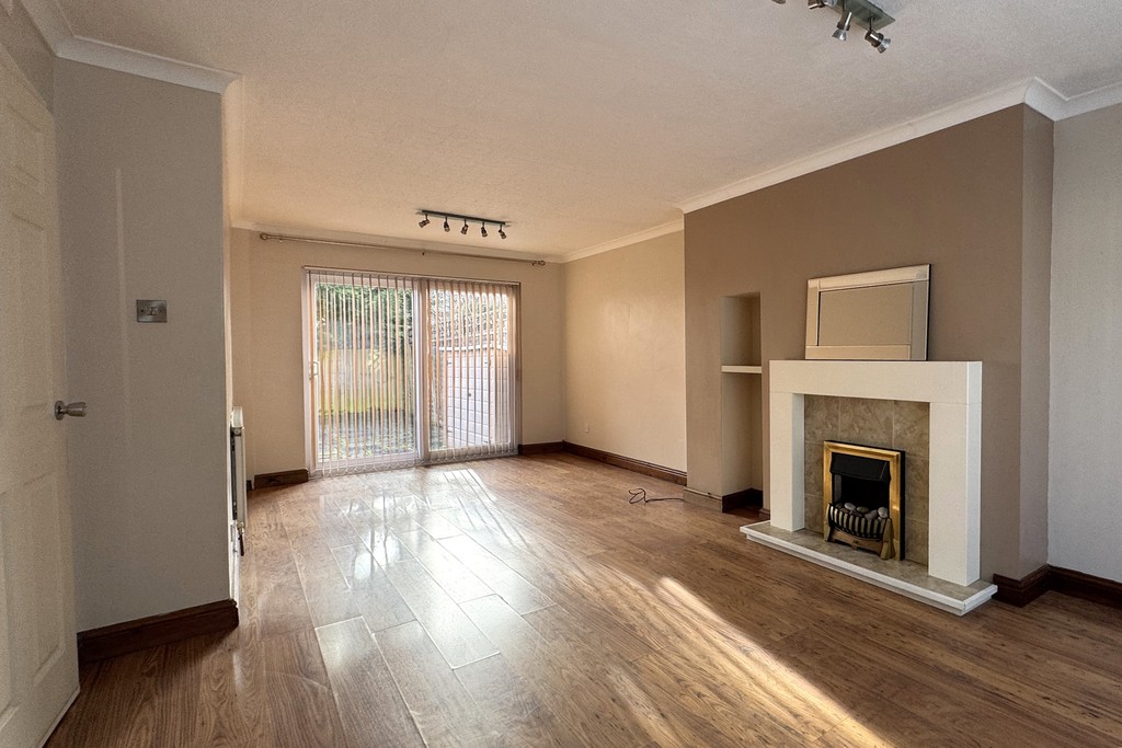 LOUNGE/DINER 10' 8" x 21' 7" (3.26m x 6.58m) Nicely proportioned dual aspect room having a front facing window and patio doors to the garden allowing plenty of natural light to flood the room. Feature fireplace with electric fire, radiator and laminate wood flooring.