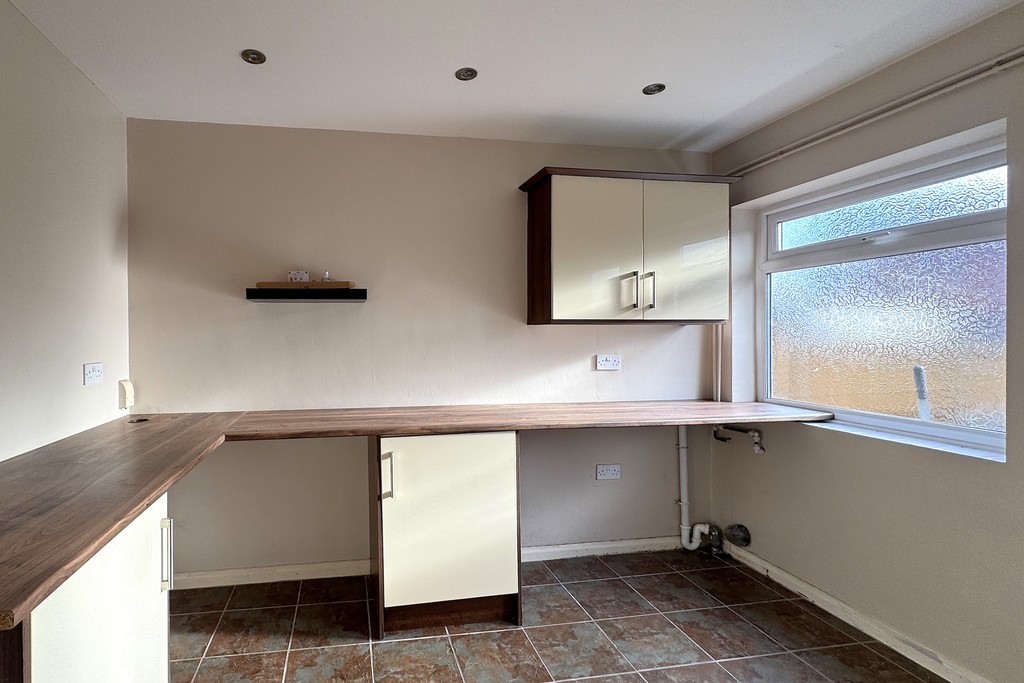 UTILITY ROOM 8' 5" x 11' 5" (2.59m x 3.48m) Spacious utility room which could lend itself to other uses, fitted with a range of wall and base units topped with work surfaces, space and plumbing for a washing machine, LED lighting, tiled flooring, obscure glazed window and an external door to the rear garden.