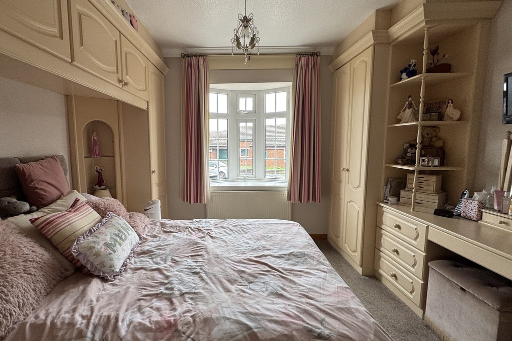 BEDROOM TWO 9' 9" x 8' 9" (2.98m x 2.69m) Having a front facing bay window, radiator, fitted wardrobes and carpet flooring.