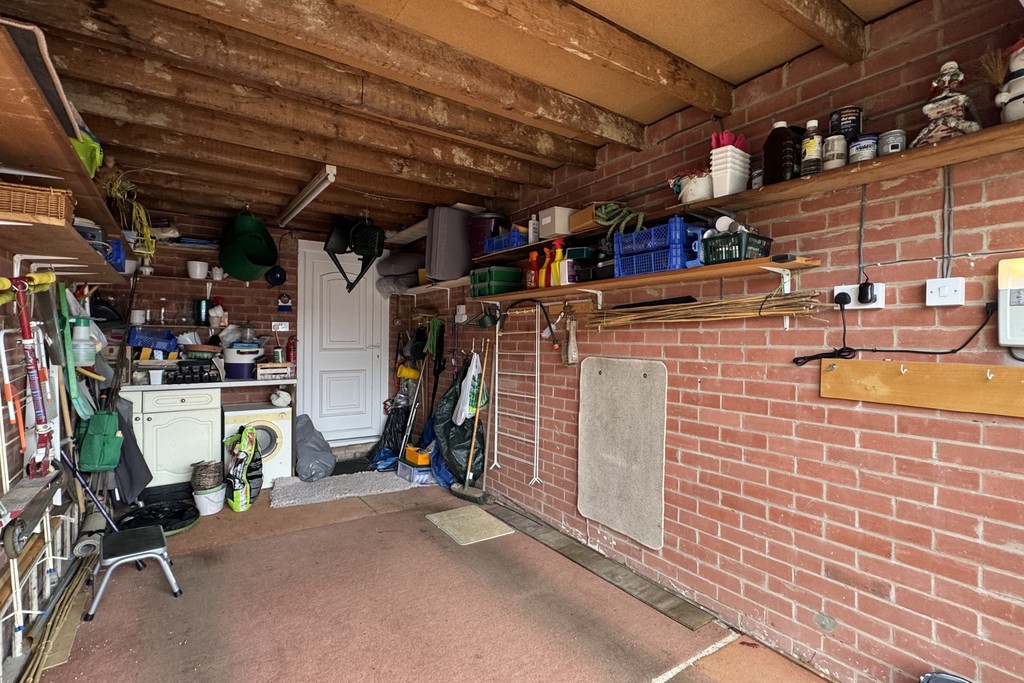 KITCHEN 8' 1" x 10' 10" (2.47m x 3.32m) Fitted with a range of wall, base and drawer units topped with work surfaces, ceramic sink and drainer with mixer tap over, space for a free standing cooker with a pull out extractor hood over and plumbing for a washing machine. Integrated fridge and freezer. Window to the side with fitted blind and a further window with fitted blind and external door to the conservatory. Built-in storage cupboard, Worcester central heating boiler and tiled flooring.