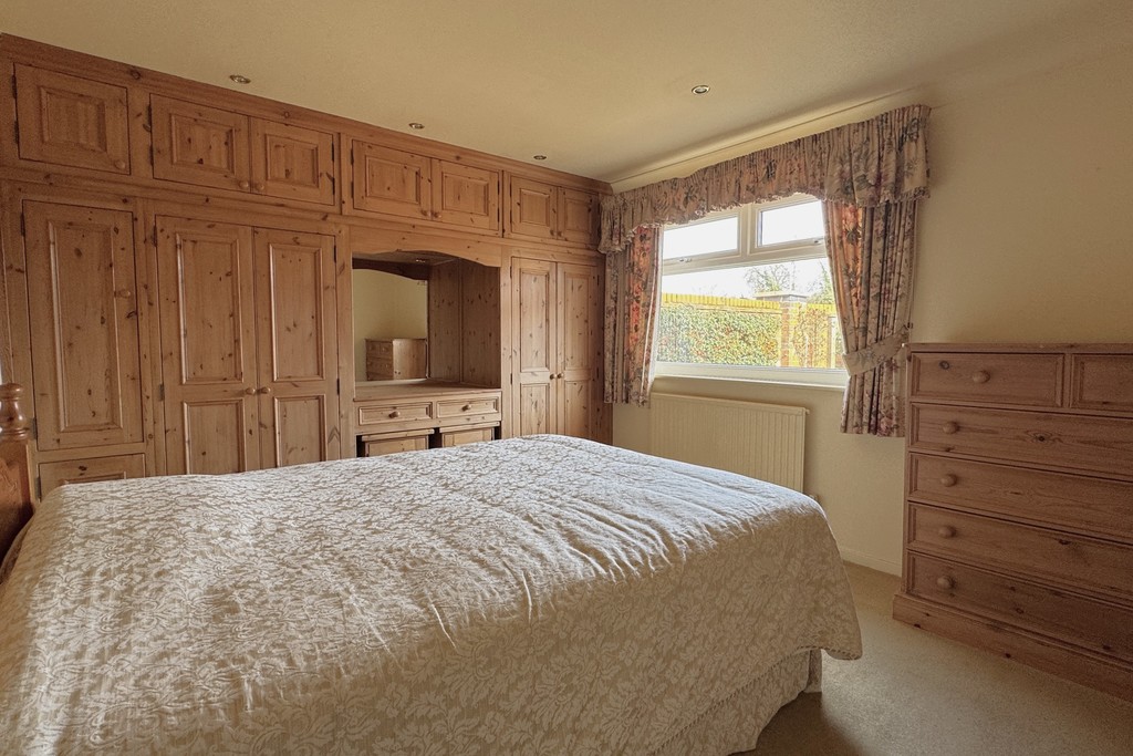 BEDROOM ONE 10' 11" x 11' 6" (3.33m x 3.52m) Having a rear facing window, radiator, bespoke fitted John Smith Pine wardrobes and carpet flooring.