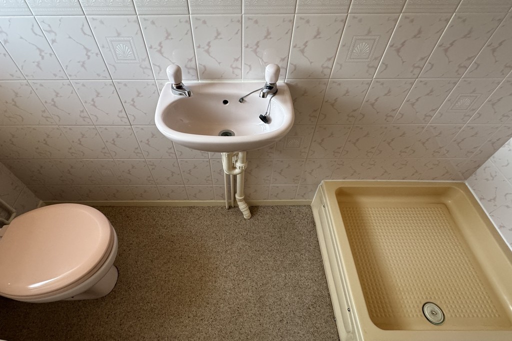 ENSUITE 2' 9" x 8' 4" (0.86m x 2.55m) Comprising of a low flush WC, wall mounted wash hand basin and a shower cubicle. Obscure glazed window for privacy, radiator and carpet flooring.