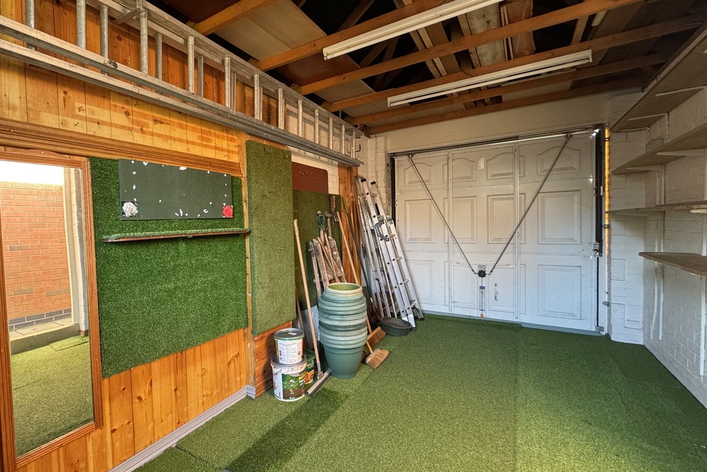 GARAGE 8' 5" x 16' 10" (2.58m x 5.14m) Having an up and over manual door, power and light connected. Window to the rear and a personnel door to the garden.