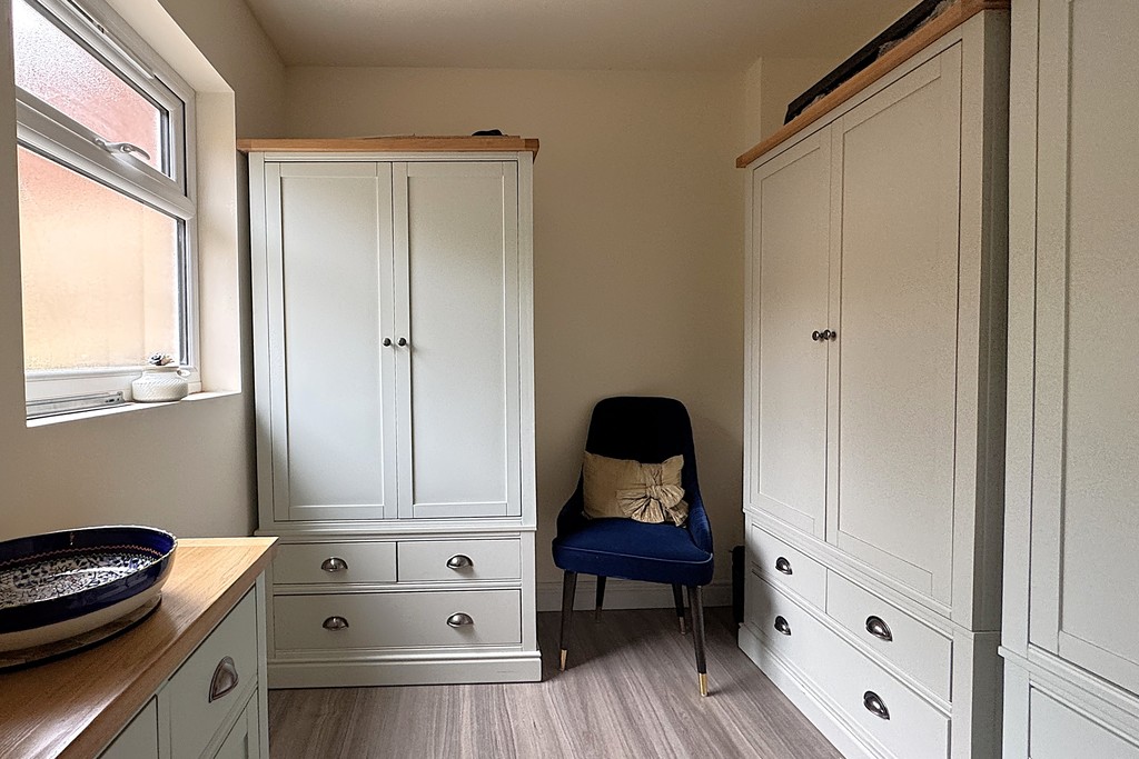 DRESSING ROOM 8' 2" x 8' 1" (2.5m x 2.48m) Having an obscure glazed side facing window for privacy, radiator and laminate wood flooring.