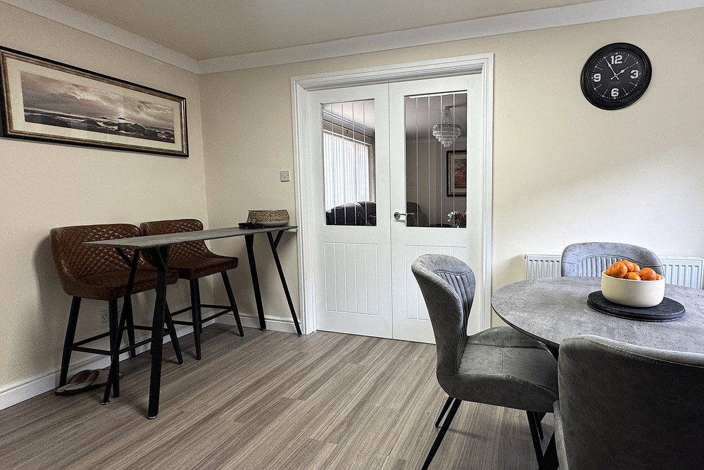 DINING AREA 7' 8" x 13' 7" (2.35m x 4.16m) Having a side facing window allowing plenty of natural light, two radiators, ample room for a dining table and glazed doors to the lounge.