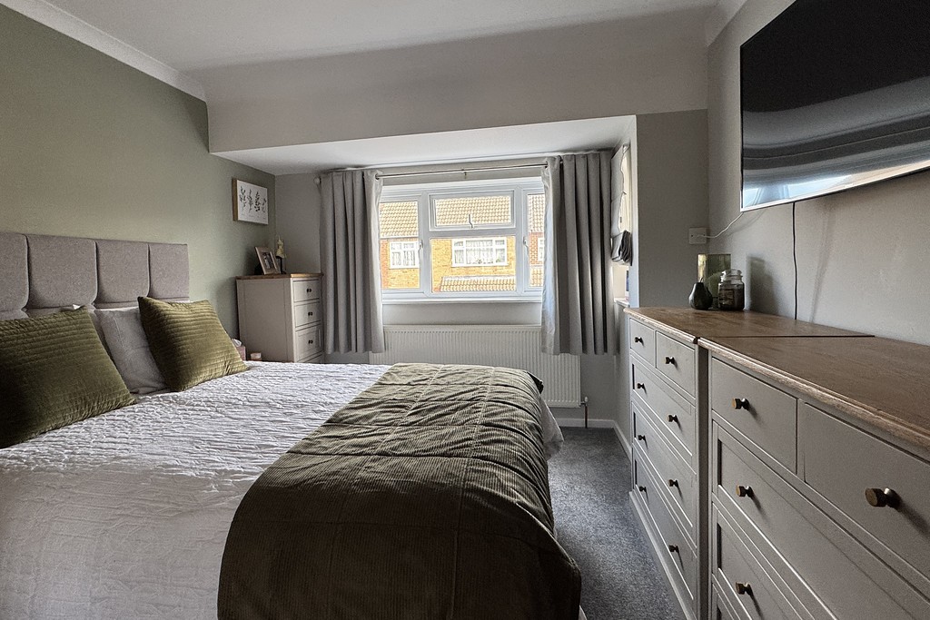 BEDROOM ONE 9' 11" x 14' 7" (3.04m x 4.46m) Generous double room having a front facing window, radiator, TV aerial point and carpet flooring.