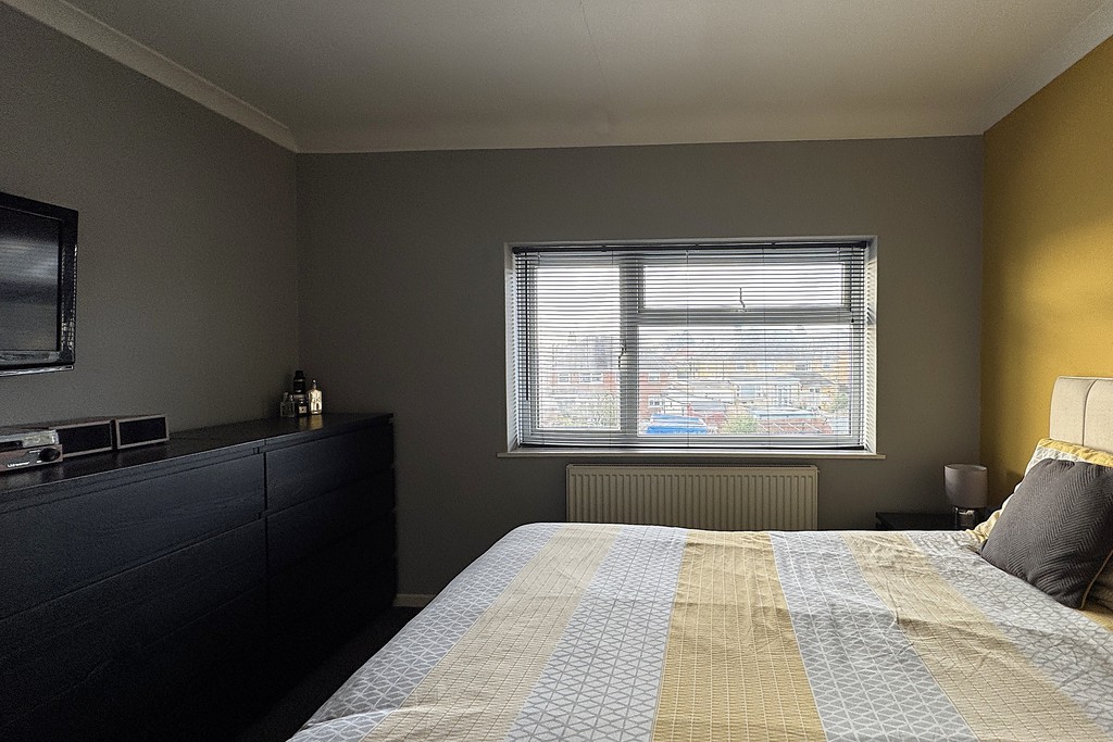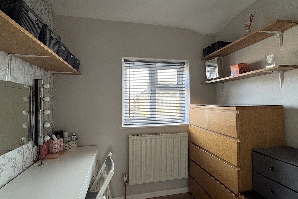 BEDROOM THREE 8' 0" x 7' 1" (2.45m x 2.18m) Having a front facing window with a fitted blind, radiator and laminate wood flooring.