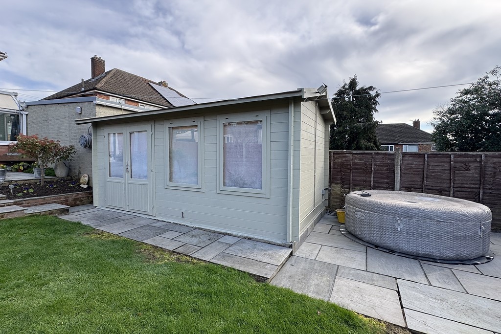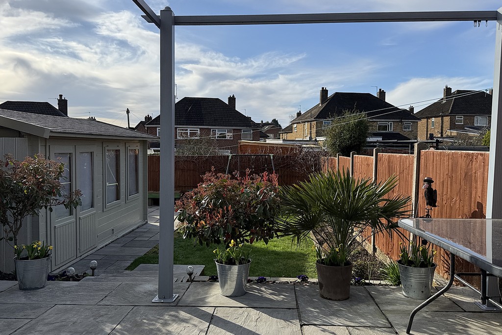 REAR GARDEN South facing and beautifully landscaped to create a raised patio area adjacent to the house with a pergola for shaded seating if required. Steps down to a formal lawn flanked by flower and shrub beds adding colour to the garden. Paved area housing the sun house and hot tub area with electric sockets. The formal lawn runs the length of the lower garden with planted border. Wood panel fencing to the boundary with gated access to a further section of garden to the rear which has a large storage shed, a private paved patio area and raised flower beds.