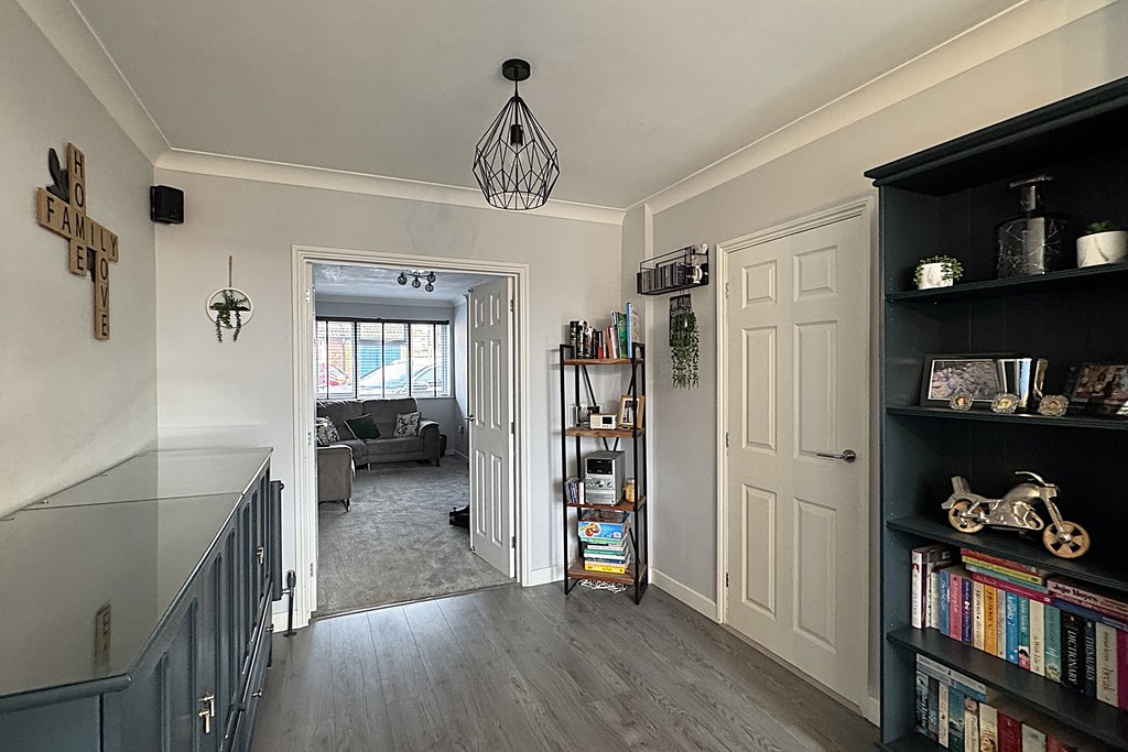 FRONT ASPECT Having a block paved driveway to the front and side providing generous off road parking, courtesy lighting to the front door, garden tap to the side. Under stairs store cupboard.