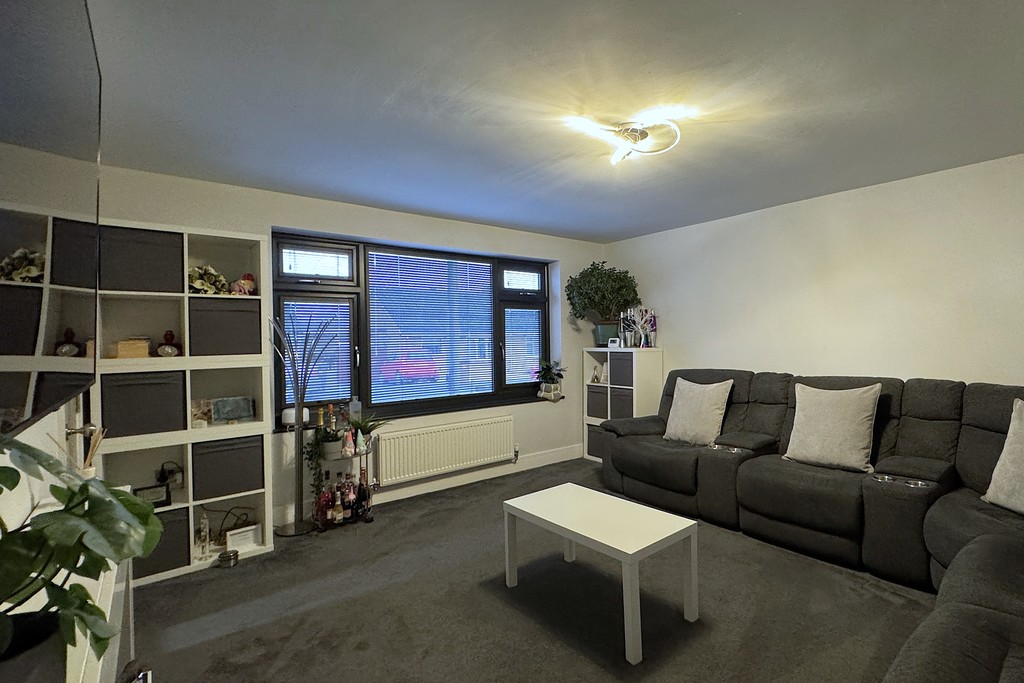 LOUNGE 13' 1" x 15' 8" (4.m x 4.79m) Having a front facing window with integral blinds, radiator, modern wall mounted electric fire, TV aerial point and carpet flooring. Door through to the kitchen.