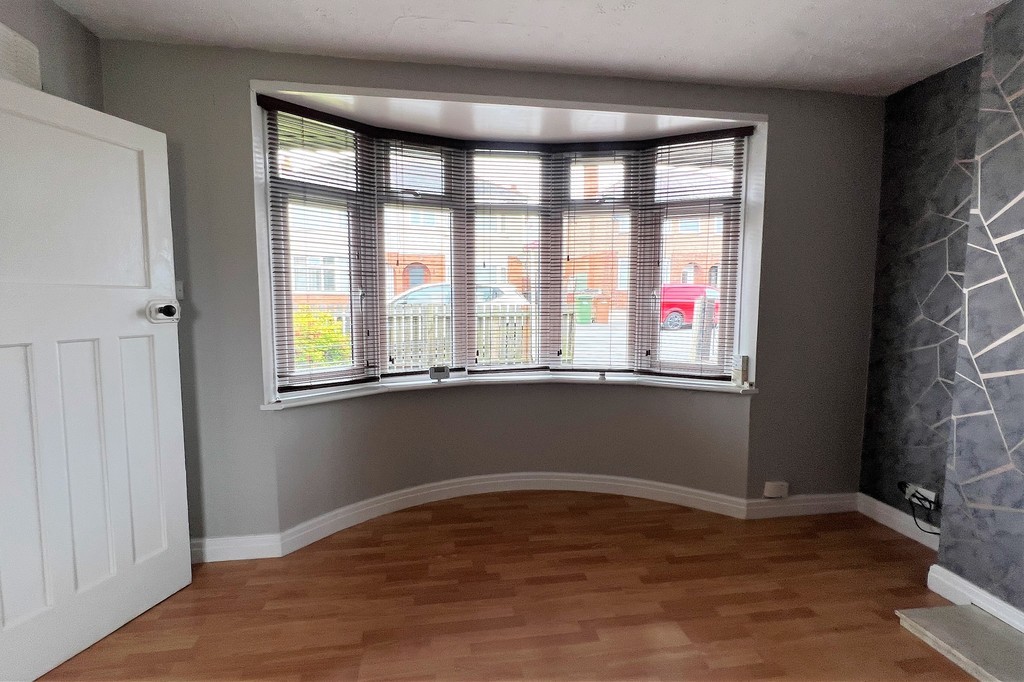 LOUNGE 12' 11" x 12' 2" (3.95m x 3.72m) Having a front facing, walk-in bay window allowing plenty of light to fill the room, radiator, electric fire with hearth, laminate wood flooring and a door through to the kitchen.