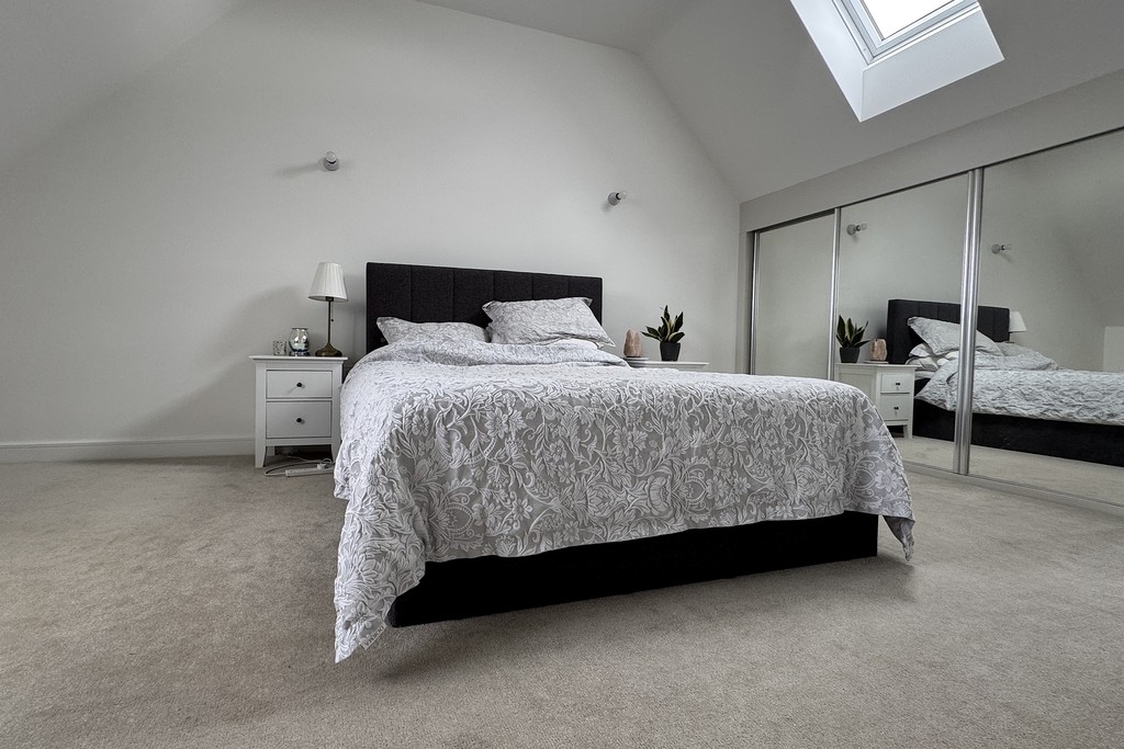 BEDROOM ONE 15' 8" x 20' 0" (4.78m x 6.12m) Spacious double room having a walk-in dormer window and a further Velux window allowing plenty of natural light. Fitted wardobes, radiator, carpet flooring and a door to the ensuite.