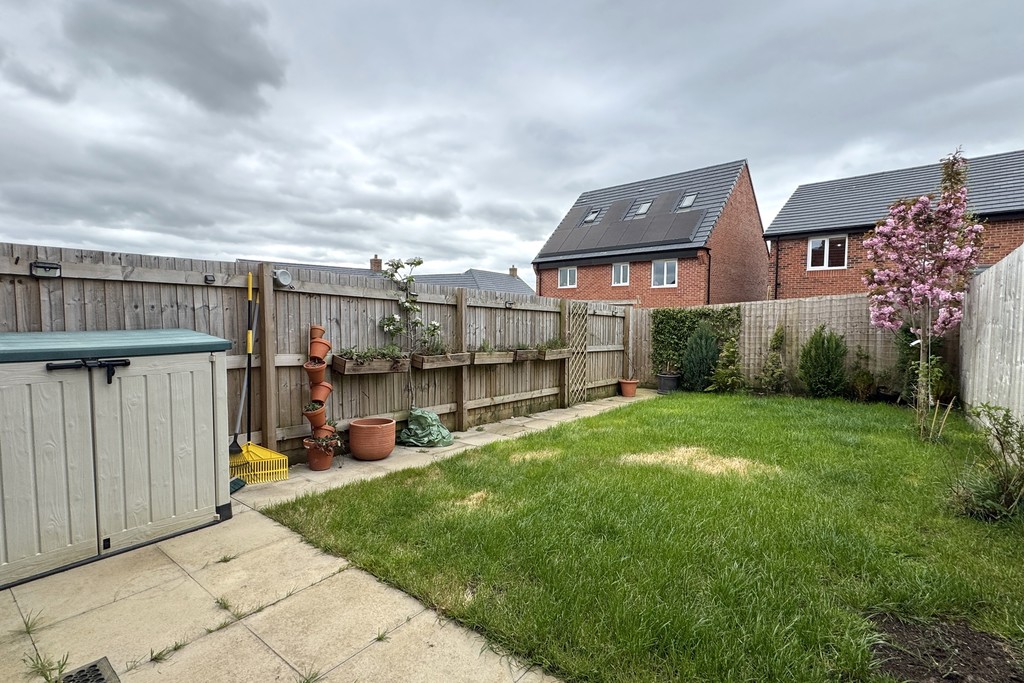 REAR GARDEN Enjoying a sunny south‑facing aspect, the garden is beautifully maintained with a lawn, planted shrubs and a patio area ideal for outdoor seating. Side gated access is provided, and the garden is enclosed by panelled fencing for privacy.