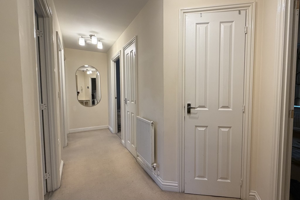 ENTRANCE HALL 3' 6" x 17' 3" (1.07m x 5.26m) Entering via a fire door into the hallway with a wall mounted telephone intercom, storage cupboard housing the electrical consumer unit, a further storage cupboard with fitted shelving, radiator and doors off to;
