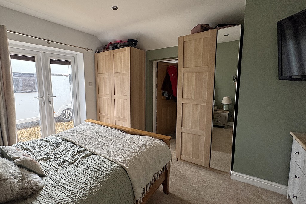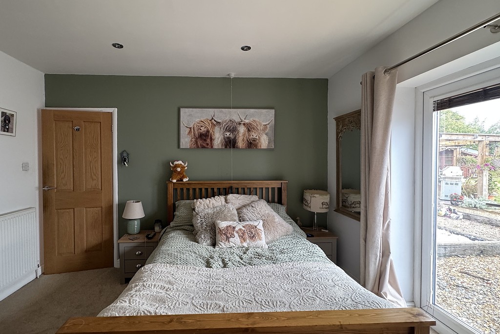 BEDROOM TWO 11' 9" x 11' 6" (3.59m x 3.52m) Having French doors to the garden filling the room with light, radiator and carpet flooring. Door to the ensuite shower room.