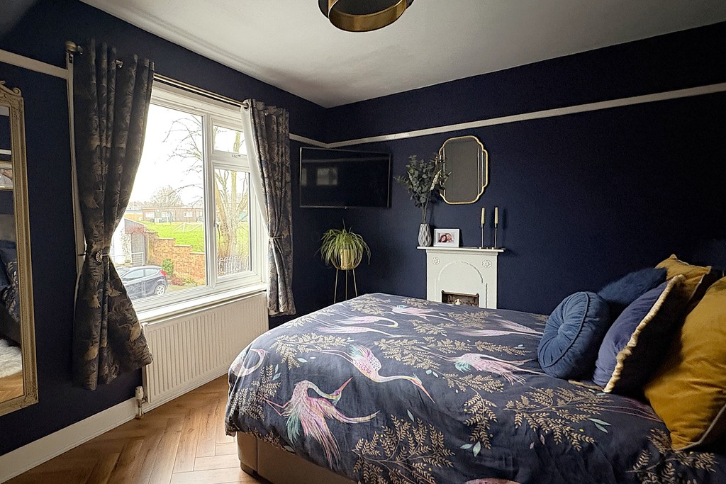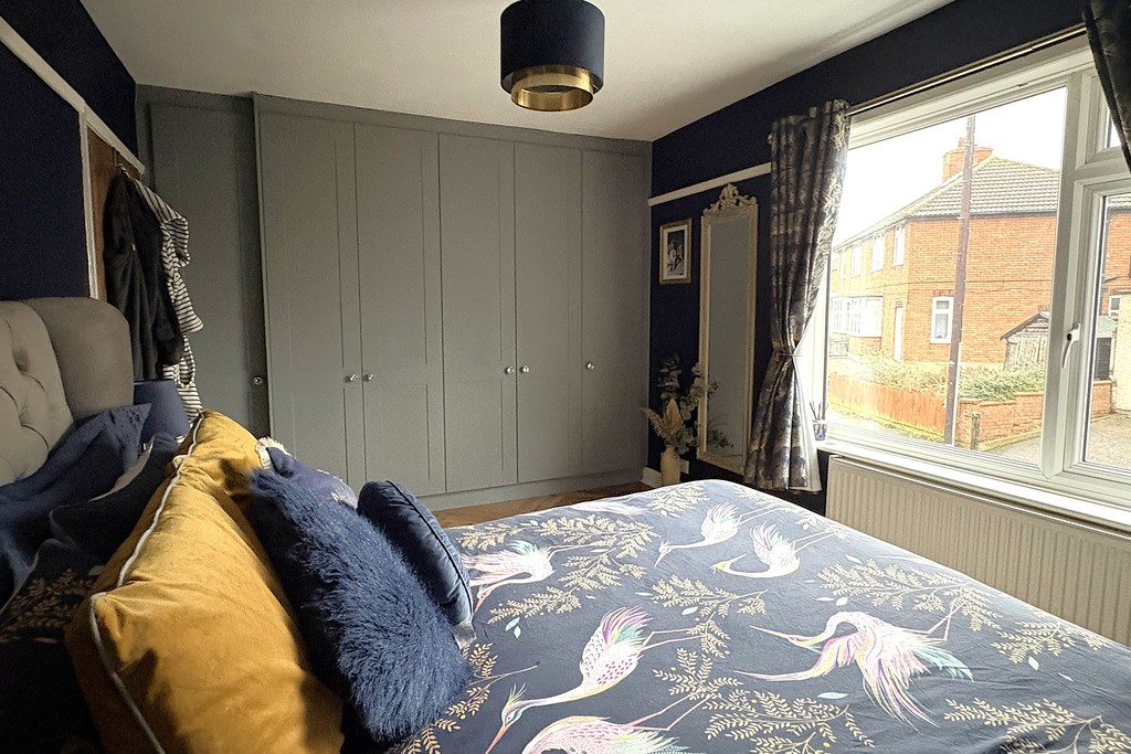 BEDROOM TWO 8' 6" x 11' 8" (2.6m x 3.58m) Having a rear facing window with views of the garden and beyond, radiator and carpet flooring.