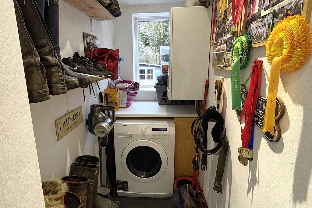UTILITY AREA 8' 7" x 2' 11" (2.64m x 0.91m) Having a work surface with space and plumbing under for a washing machine, wall mounted central heating boiler, shelving and a window to the rear. External door to the rear garden.