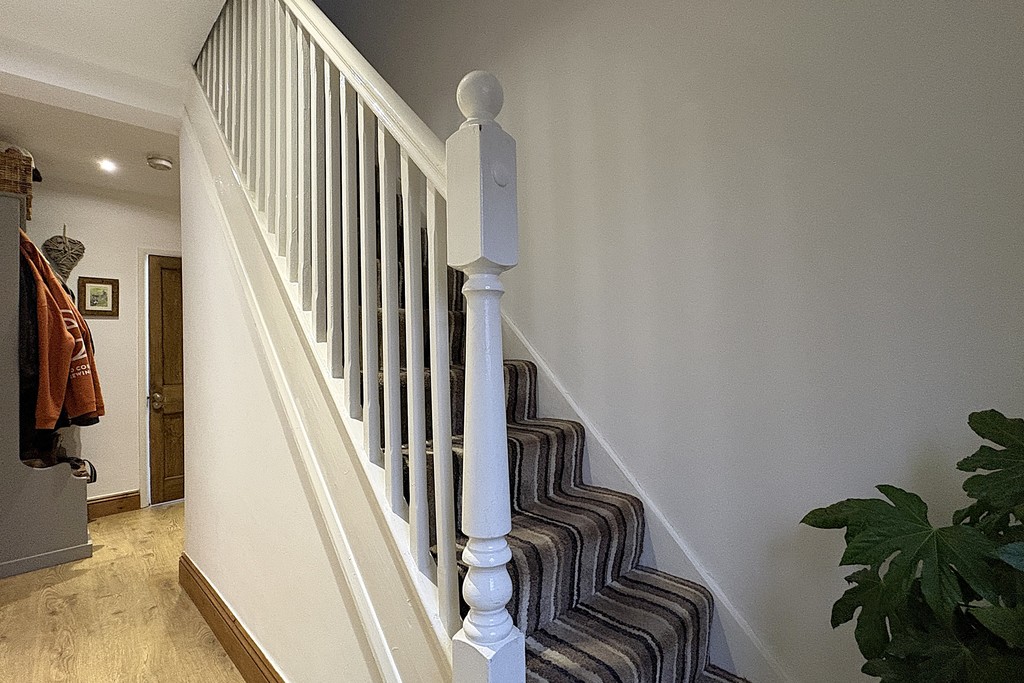 ENTRANCE HALL Part glazed door into this welcoming entrance hall having stairs rising to the first floor, under stairs storage cupboard, radiator, laminate wood flooring, window to the side aspect and doors off to;