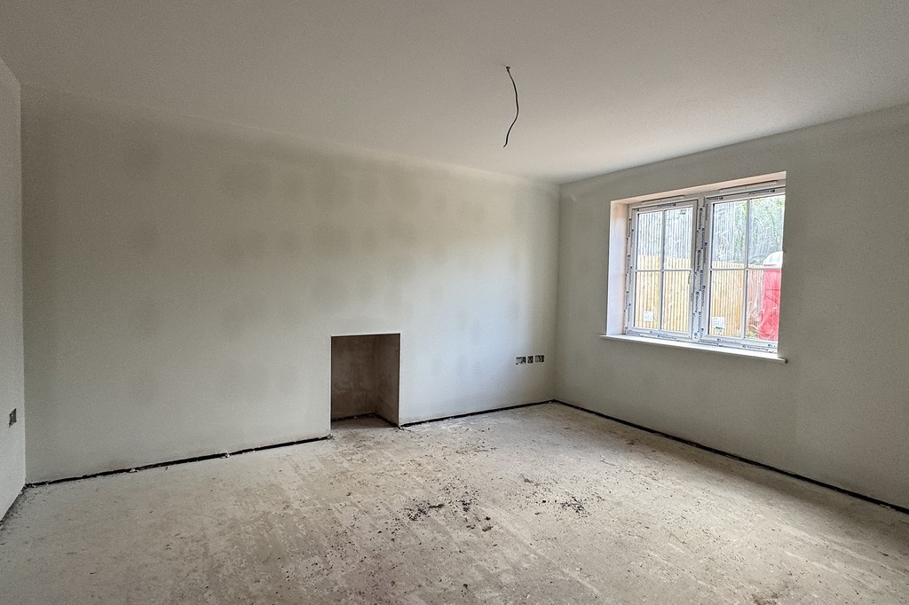 LOUNGE 11' 1" x 14' 3" (3.38m x 4.35m) Having a front facing window and focal feature of the room will be an inset gas log burner for cosy evenings in.