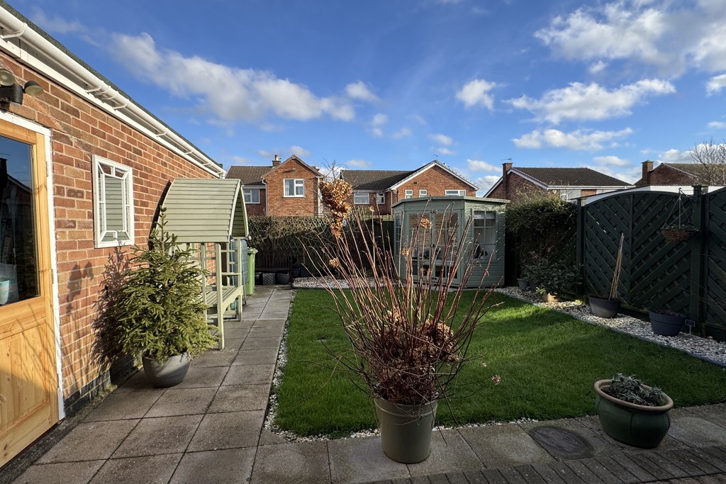 REAR GARDEN A good sized east facing garden with a block paved seating area adjacent to the bungalow, formal lawn framed by paving and gravel beds. An Arbour and a summer house complement the garden and wood panel fencing secures the boundary.