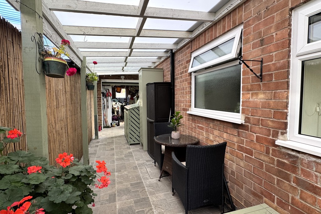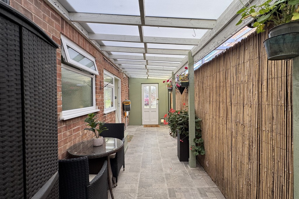 PORCH /CAR PORT Formerly a carport this now serves as an undercover seating area with outside tap and access to the garage, garden and bungalow.