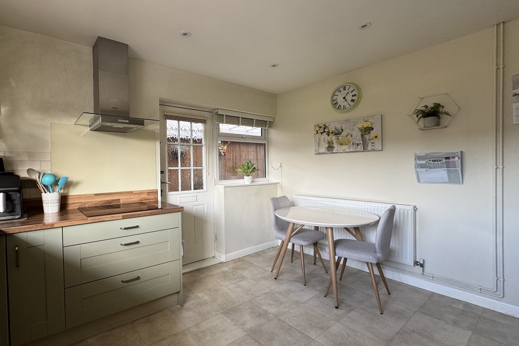 KITCHEN/DINER 11' 11" x 13' 8" (3.65m x 4.18m) External door into the spacious kitchen diner which is fitted with a generous range of wall, base and drawer units topped with work surfaces, stainless steel tap with flexi-hose mixer tap, space and plumbing for a washing machine. Integrated appliances include Neff dishwasher, an eye level Neff oven and microwave, Neff induction hob and extractor fan. Duals aspect windows with fitted blinds and an external door to the garden allows plenty of light to fill the room, TV aerial point, LED lighting, radiator and vinyl flooring. Glazed oak door through to the inner hall.