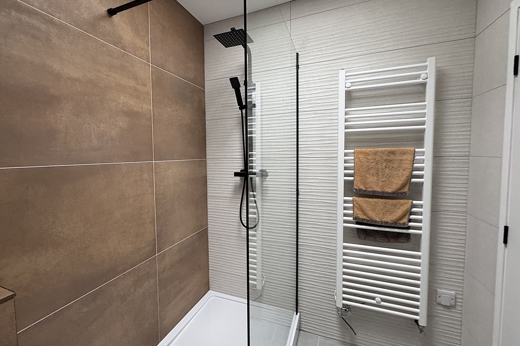 ENSUITE 5' 10" x 6' 3" (1.8m x 1.92m) Comprising of a corner shower cubicle with fixed waterfall shower head and shower riser, vanity unit wash hand basin, dual flush WC and a heated towel rail. Obscure glazed window for privacy and allowing light to filter through, LED lighting, wood effect tiling to the walls and tiled flooring.