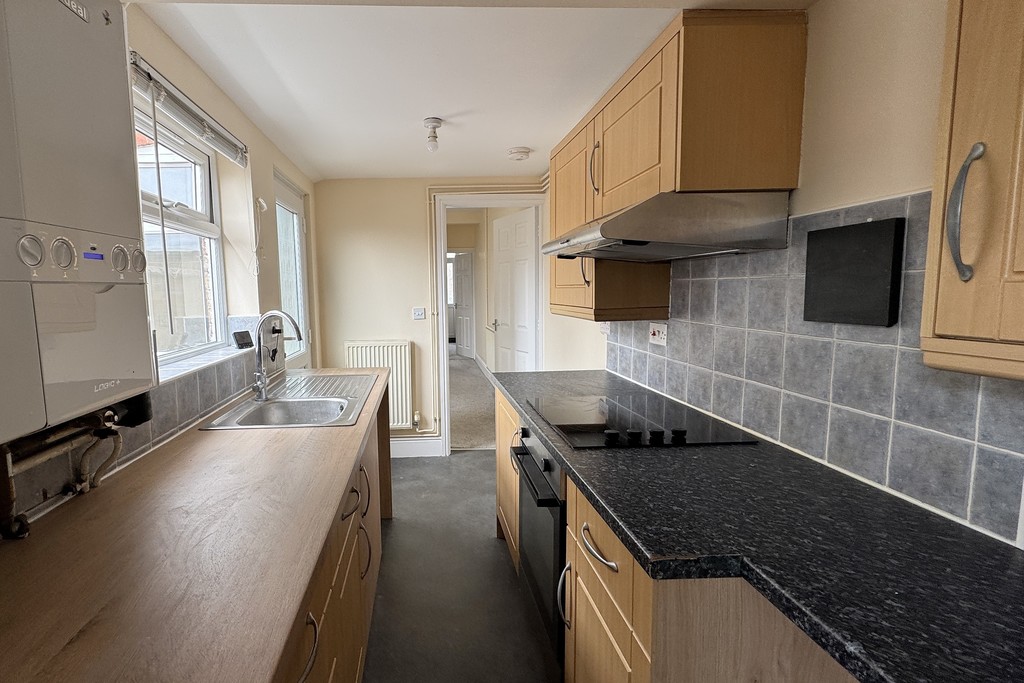 KITCHEN 6' 1" x 12' 4" (1.86m x 3.78m) Fitted with a range of wall, base and drawer units topped with work surfaces, stainless steel sink and drainer unit, space and plumbing for a washing machine. Integrated electric oven and Lamona electric hob with extractor over. Window and external door to the garden, wall mounted central heating boiler and vinyl flooring continuing through to the bathroom.