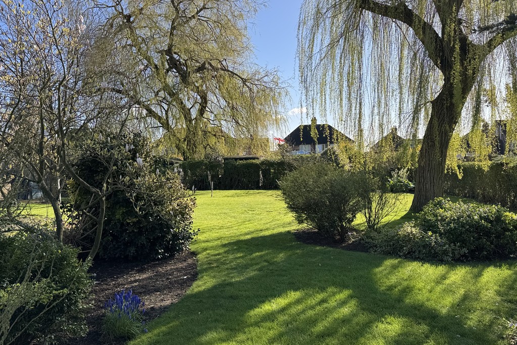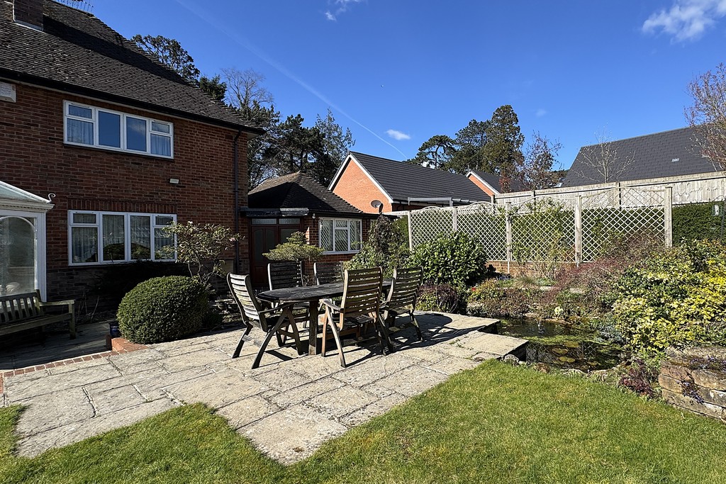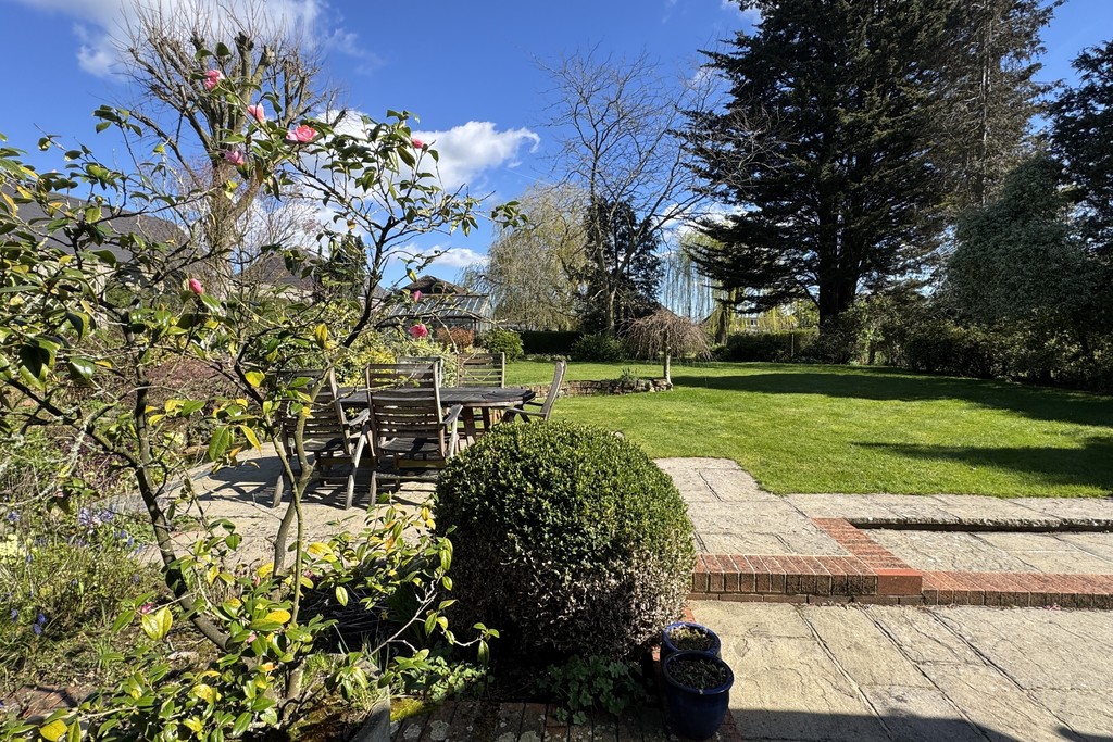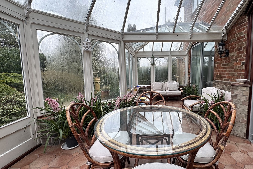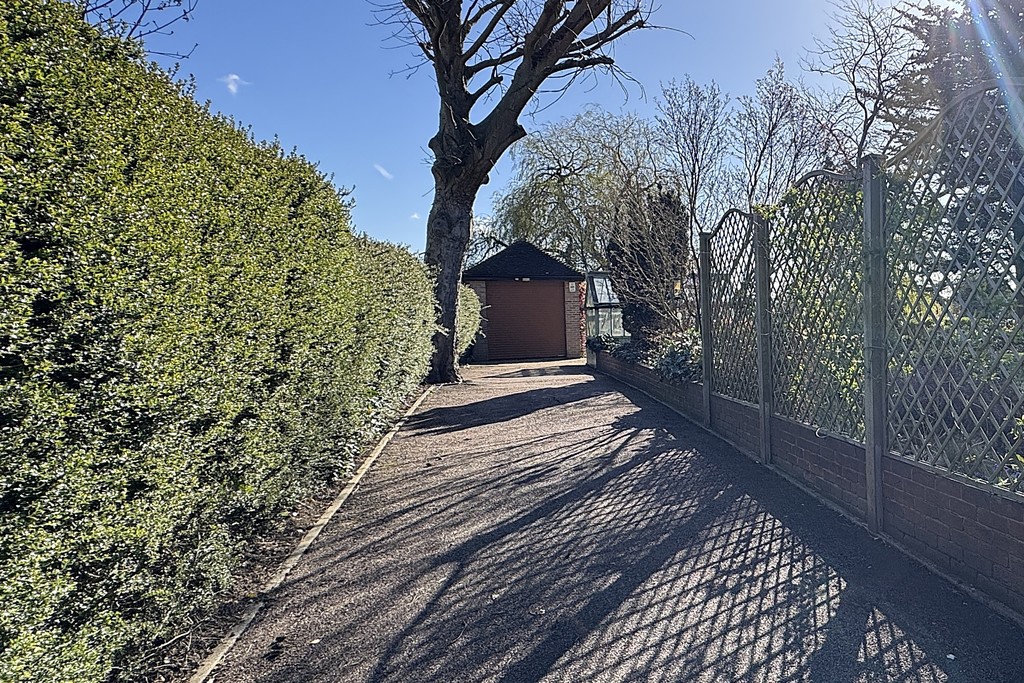 GARDENS The beautifully landscaped grounds wrap around the property, planted with established shrubs and mature trees, including protected Pine Redwood and Spruce trees. Double gates open onto the front driveway, leading to the first garage and continuing along the side of the property to the rear garage, offering excellent parking and storage options. A charming storm porch with courtesy lighting frames the front doors, while to the rear you'll find a patio area overlooking a garden pond and enjoying views across the generous, well‑tended garden, a peaceful spot to unwind and take in the surroundings.