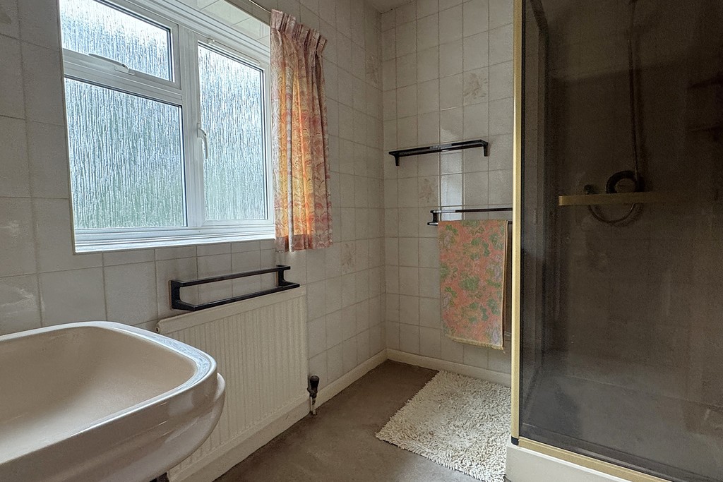 SHOWER ROOM 7' 4" x 5' 8" (2.25m x 1.75m) Comprising of a shower cubicle and pedestal wash hand basin. Obscure glazed window for privacy, radiator and carpet flooring.