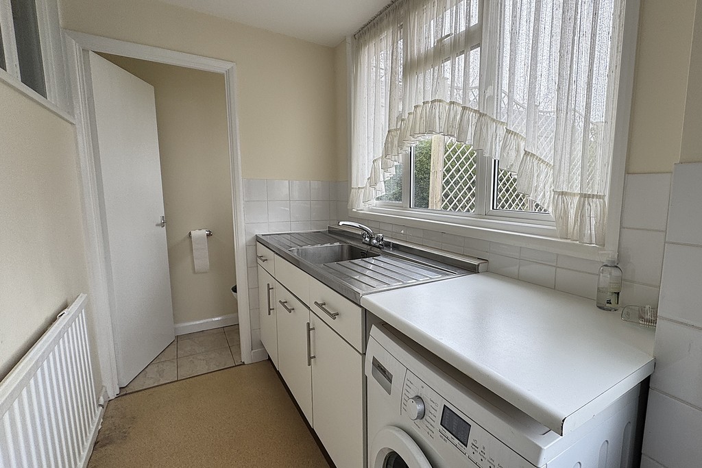 UTILITY ROOM/WC Fitted with a base unit topped with work surface and a stainless steel double drainer and sink unit, space and plumbing for a washing machine. Window and external door to the rear garden, radiator, vinyl flooring and a door to the WC.