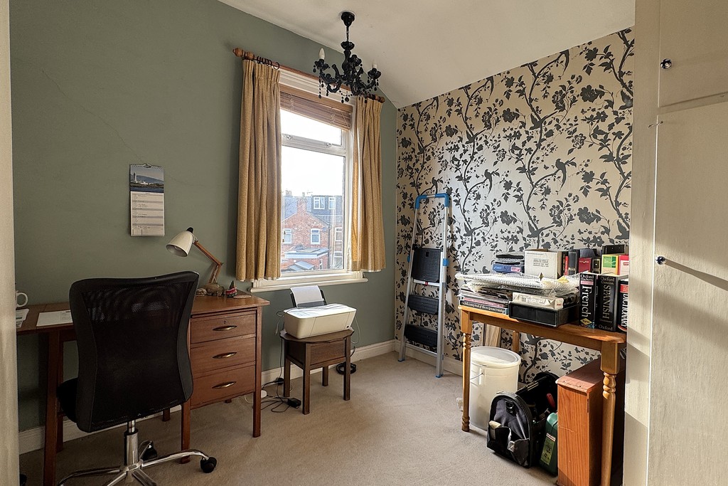 BEDROOM THREE 9' 2" x 9' 8" (2.8m x 2.95m) Having a window to the rear aspect, along with a radiator and carpet flooring.