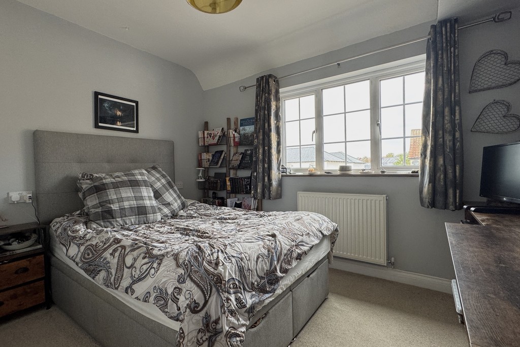 BEDROOM TWO 10' 3" x 11' 6" (3.13m x 3.52m) Featuring a front facing window, radiator, a built-in wardrobe, and carpeted flooring.